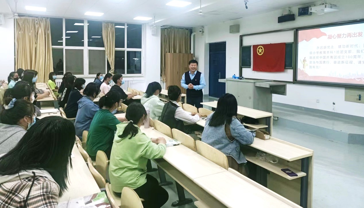 2022年5月1日晚,在五四青年来临之际,为庆祝中国共产主义青年团成立100,继承和发扬“五四”精神,21级小学教育本科1班团支部于E-3-308教室召开了“激扬五四精神,庆祝建团百年”主题团课。特邀明升MS88院长王全乐老师和大家一起参加。