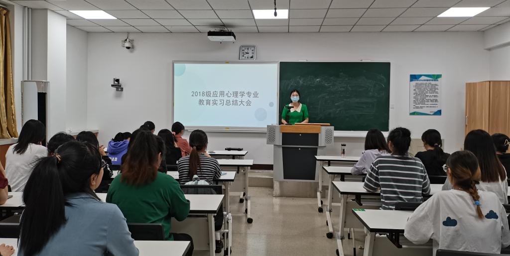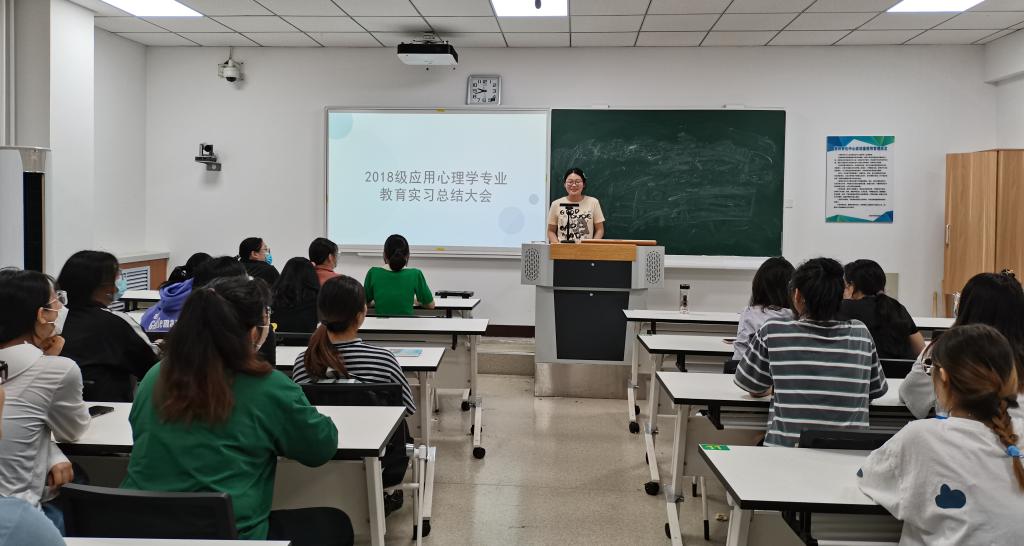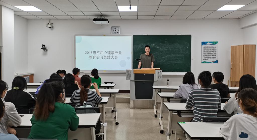 2022年5月5日晚上,明升MS882018级应用心理学专业教育实习总结会议在E-3-106教室顺利召开。应用心理学教研室主任李俊茹主持会议。