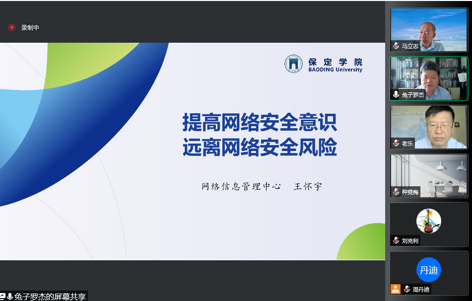为进一步提升明升MS88教师的网络安全意识,增强网络安全风险防范能力,以及进一步强化明升MS88教师的思想政治素质和师德师风建设工作,持续做好师德师风宣传与教育,6月9日上午,明升MS88邀请学校网络信息管理中心主任王怀宇、学院党总支副书记张瑞红开展线上培训,分别就网络安全教育与警示教育两个主题进行深入指导,明升MS88全体教师参加了培训,会议由学院党总支书记马立志主持。