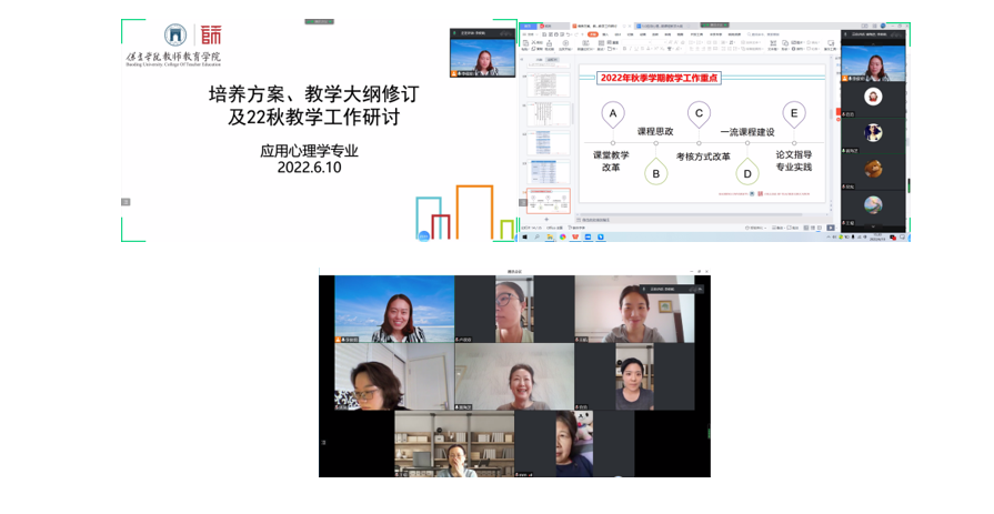 2022年6月6日至6月10日,应用心理学教研室8名教师积极参加了学院组织的院本培训活动。本次活动分为学院集中组织的培训学习和以教研室为单位组织的研讨交流活动。