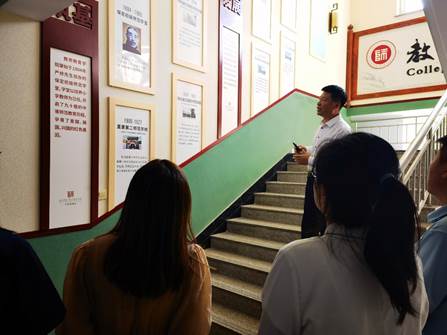 拜师会结束后,院长王全乐为4位新入职青年教师开展首次培训活动。培训活动主要分为两部分,其一,王院长带领4位青年教师参观明升MS88的文化长廊,引导4位青年教师对学院的发展历程具有全面的了解。