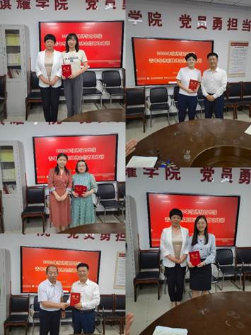 然后,马立志书记宣布学院选聘导师名单。今年学院共有4名青年教师和6名指导教师。宣布完毕后,马书记、王院长、张书记、种院长依次为各位指导教师颁发聘书并合影留念。