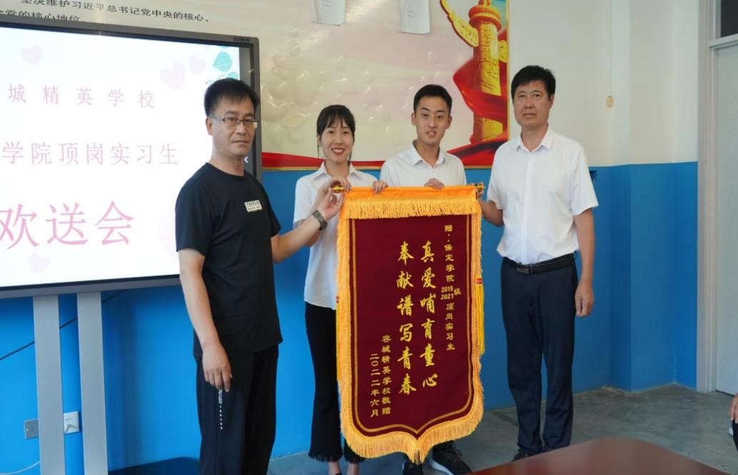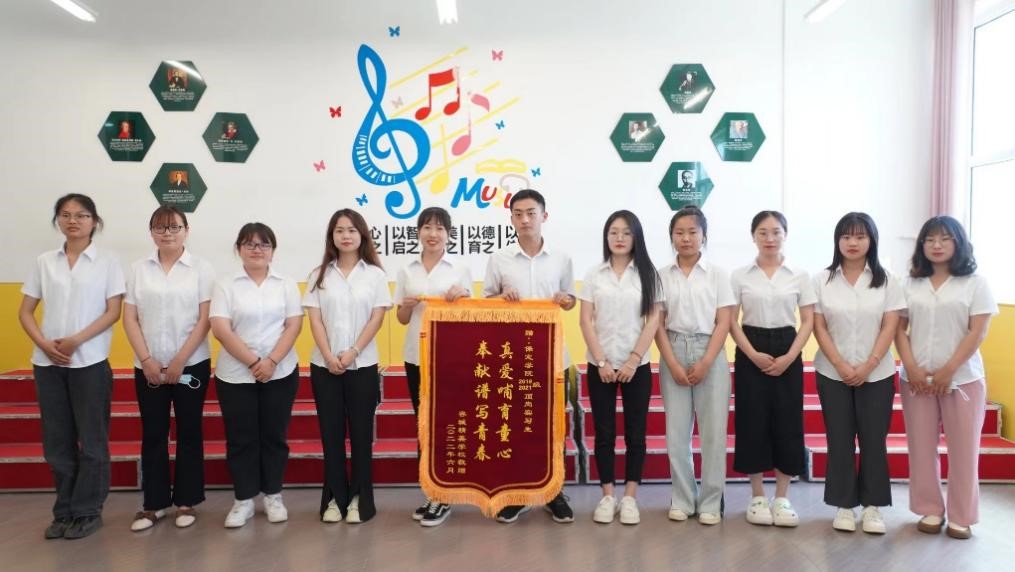 近日,一面写有“真爱哺育童心,奉献谱写青春”的锦旗由我校顶岗实习学生上交学院(因疫情原因,学生未返校,所以一直由实习学生保管),以表彰小学教育2019级文、理班和2021级专接本班共11名同学在顶岗实习期间的优异表现。这些同学分别为:2019级文班的李酷、雷娟、刘莹、李滋悦、李梦涵;2019级理班的田一丹;2021级专接本班的于盼、刘倩、金绍波、耿洁文、王美娟。赠者为容城县精英学校。